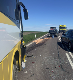 Jednalo se o mimořádnou událost I. stupně, po srážce několika osobních vozů a autobusu jsme měli v péči 9 pacientů. Na místě byly záchranářské týmy, lékařský vůz, vrtulník a velkokapacitní sanitka…
